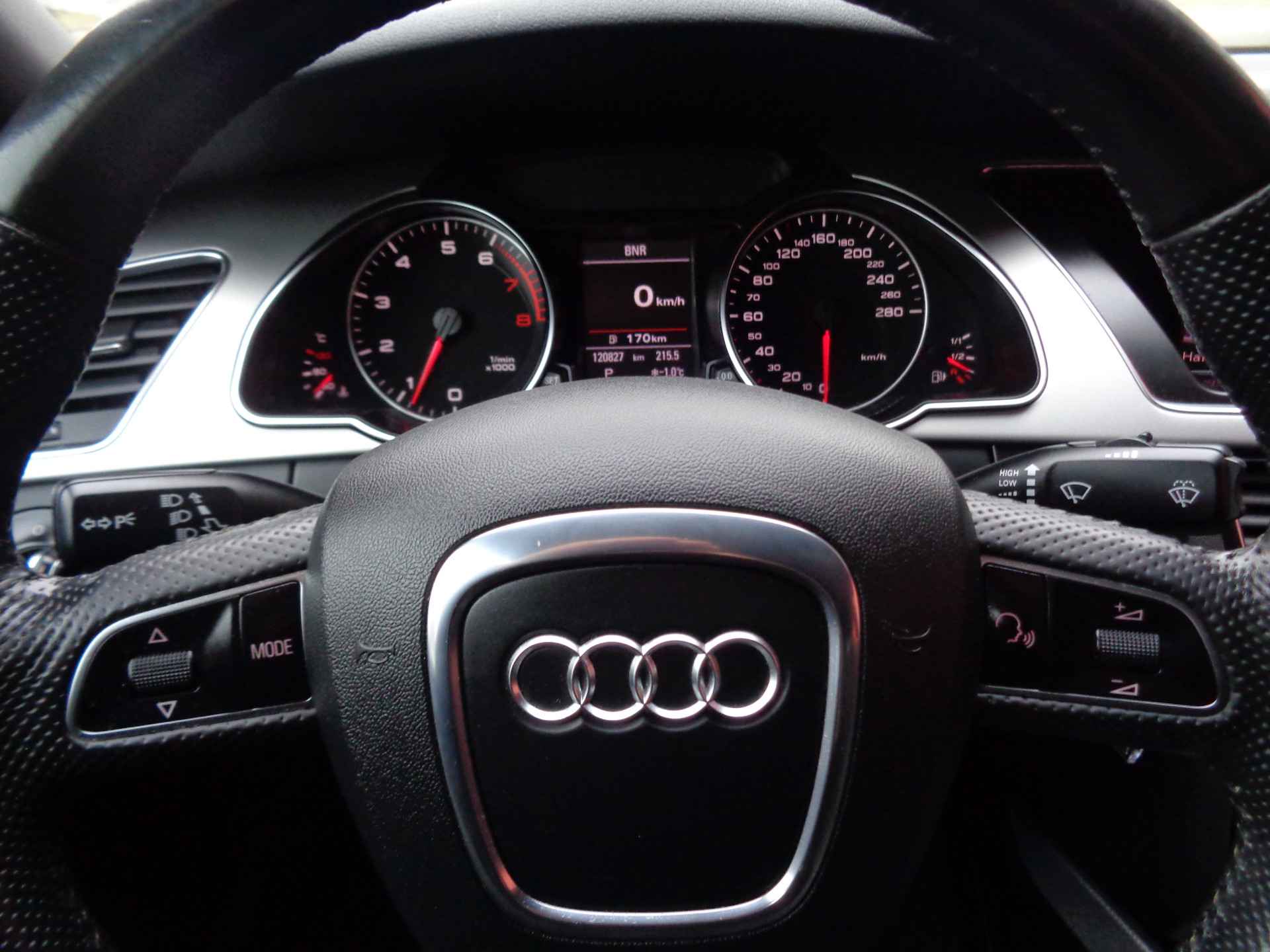 De auto is ook uitgevoerd met electronic climate control. Kom-maar-kom-maar...ho! Zo eenvoudig is het voordeel van parkeersensoren. En zo behulpzaam! In deze Audi kunt u zich concentreren op het verkeer, terwijl de auto de omgeving voor u in de gaten houdt. Een automatisch inschakelbare verlichting zorgt dat de verlichting aangaat als het donkerder wordt - in tunnels bijvoorbeeld - en de regensensor schakelt de ruitenwissers in als het nodig is. U hoeft er niets aan te doen. Voorzien van cruise control, dus vriendelijk voor de inzittenden én de benzinetank. Met navigatiesysteem, lederen stuur, centrale portiervergrendeling en lederen versnellingspook is deze auto helemaal compleet.